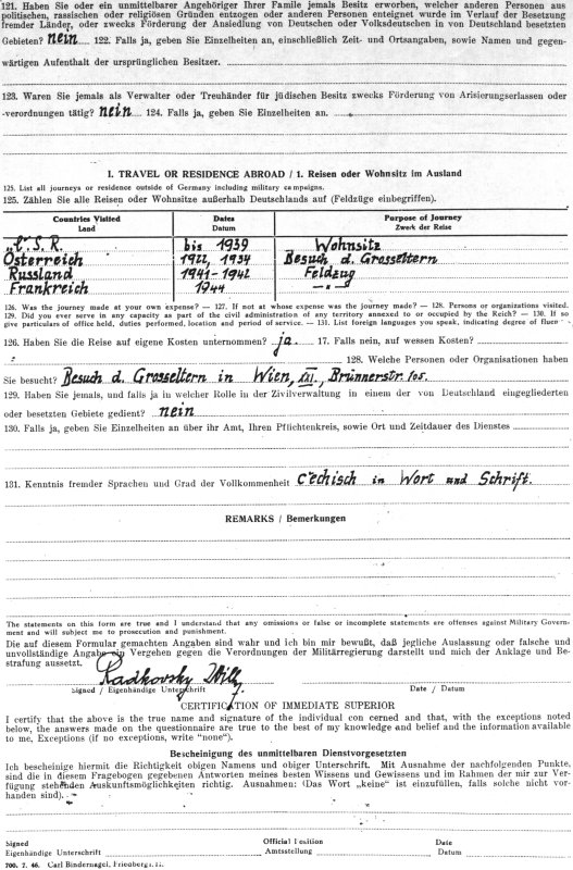 Geboren am 27. September 1914 in Neutitschein 1021; Eltern: Rudolf Radkovsky